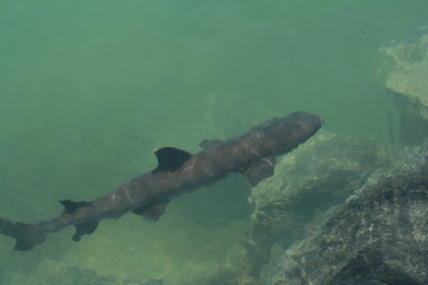 タートルベイで泳いでいたら入り江に迷い込んできたサメ。体長1.5mほどでした。 |