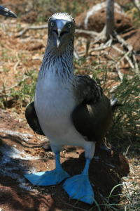 真っ青な足のアオアシカツオドリ。ひょこひょこ歩く姿がかわいい。ひょこひょこ歩くのは求愛ダンスという話も。人間を全く恐れない。